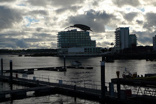 The St Mary's Street area is one of two really very good things in Cardiff, the other being the Imperialistic Beaux-Arts pleasures of Cathays Park, lots of Portland stone classical buildings housing sundry museums, assemblies and suchlike, with green space inbetween and boulevards laid through. Interestingly, this was planned decades before Cardiff was designated 'capital' of Wales, and yet it is laid out with confident gusto as if it already were. It's not to my taste, mostly, - generally a bit too limpid and cold, and retrograde for the 1910s-30s, given what was happening elsewhere in Europe - but at least they made a bloody effort. It's this which makes the comparison between Cathays Park and Cardiff Bay so irresistible, in that both were explicitly laid out as bureaucratic and cultural centres (with some retail added in the new version). 'Cardiff Bay', previously the beautifully-named 'Tiger Bay', became, as with Greenwich Peninsula and the Cardroom Estate in Ancoats aka New Islington, a Blairite tabula rasa - and like those it remains fundamentally unfinished. Even the ceremonial boulevard towards the new district, named after an enthusiastic leader of the most senseless war in history, Lloyd George Avenue, was apparently botched, and is likely to remain unfinished, with anything slightly adventurous in the original proposals - oh, interesting planning, light transit, whatever - replaced with a mere road from A to B.