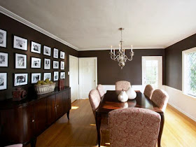 Bring in crisp white wainscoting to keep a rich color like this chocolate brown from making a space feel too cave-like